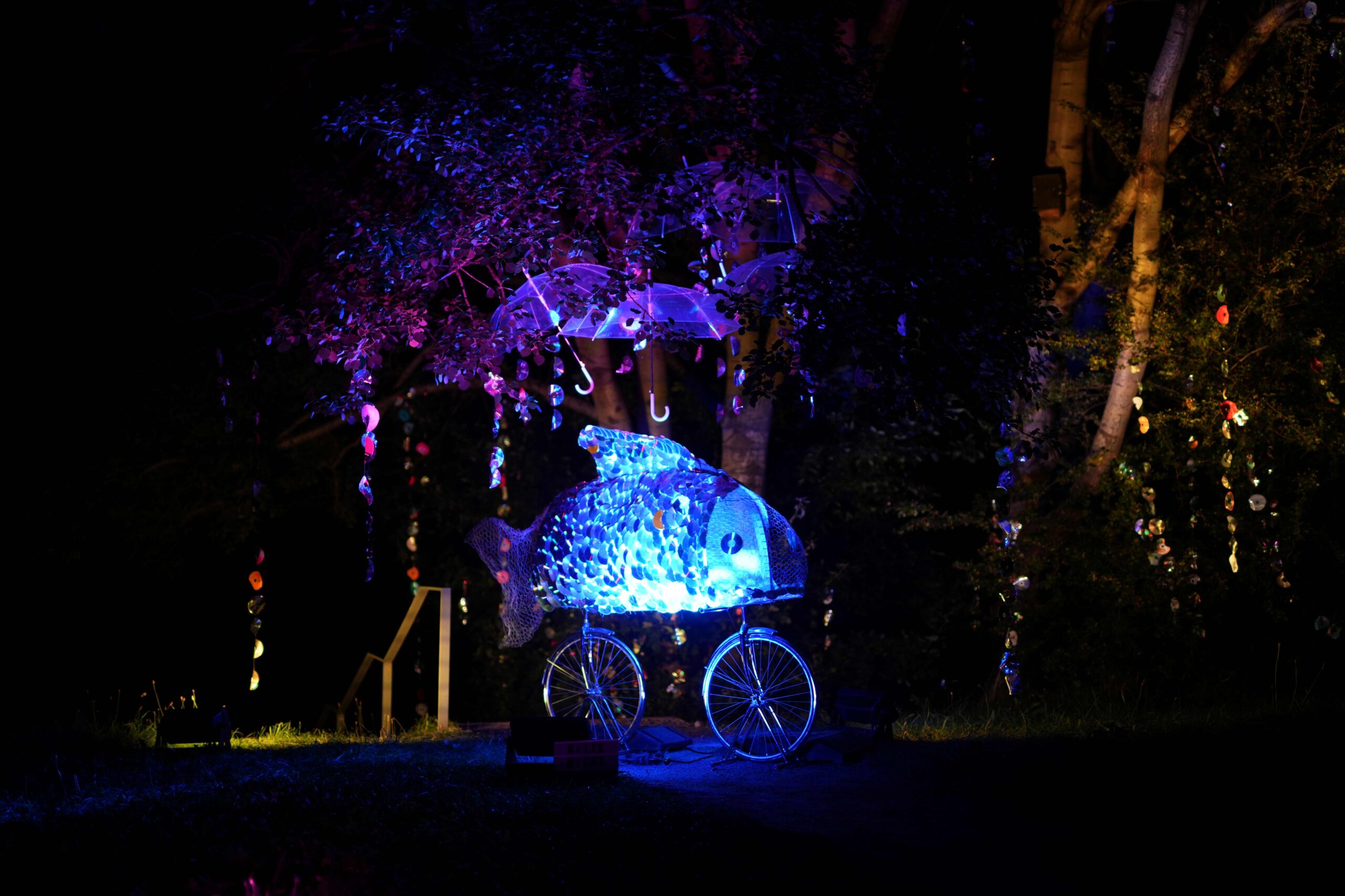 Seit 2021 kooperiert die Stadtpark Norderstedt GmbH mit Studierenden der Hochschule für Künste im Sozialen Ottersberg. Eine Gruppe von Studierenden entwickelt gemeinsam mit dem Stadtpark-Team die Veranstaltung konzeptionell weiter und gestaltete seit dem künstlerischen Objekt als kreativen Beitrag zum ParkFunkeln Norderstedt. Eine tolle Kooperation, die sich hoffentlich noch weiter etablieren und ausbauen lässt.